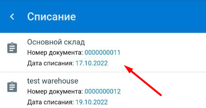 После отображения документа в мобильной версии мы уже можем сканировать коды маркировки тех ТМЦ, которые мы списываем.