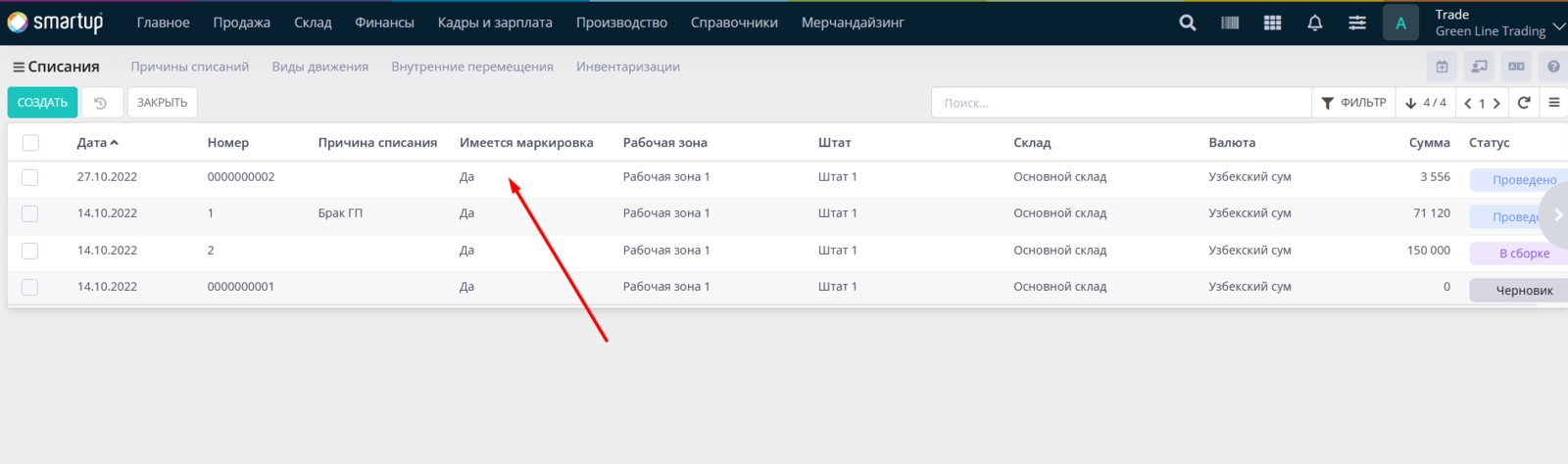 Несмотря на процесс списания, мы все равно останемся владельцами данных кодов маркировки в системе CRPT TURON. На данный момент операция списания в системе CRPT TURON не реализована. Соответственно важно понимать, что списание происходит только внутри системы SmartUp.