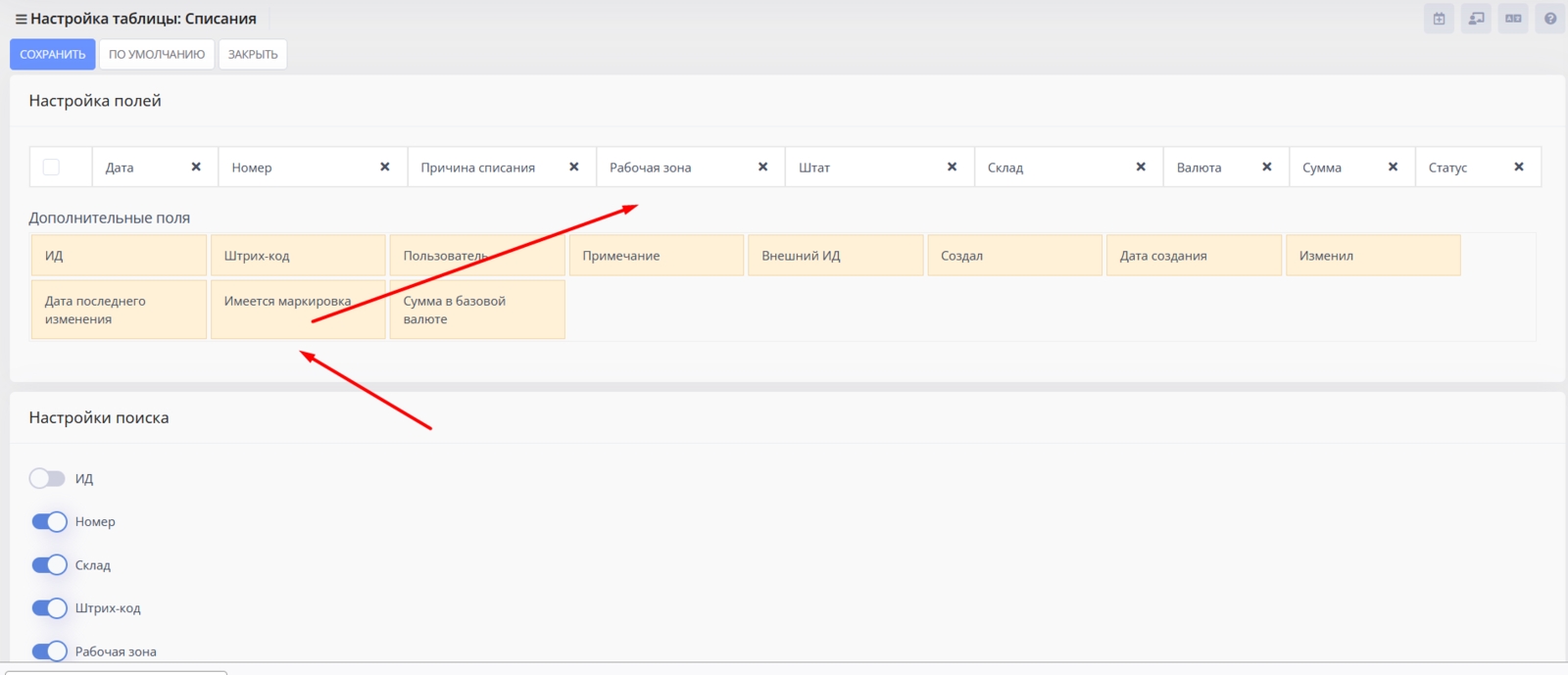 Причина списания — причина, по которой товар списывается со склада (необязательное поле)